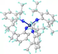 2,6-Diisopropylaniline is an organic compound with the formula H2NC6H3(CHMe2)2 (Me = CH3). It is a colorless liquid although, like many anilines, samples can appear yellow or brown. 2,6-Diisopropylaniline is a bulky aromatic amine that is often used to make ligands in coordination chemistry. The Schrock carbenes often are transition metal imido complexes derived from this aniline.[1] Condensation with diacetylpyridine and acetylacetone gives, respectively, diiminopyridine[2] and NacNac ligands.[3]