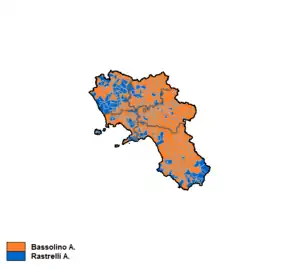 Antonio Bassolino (Democrats of the Left) was elected President, defeating Antonio Rastrelli (National Alliance), who had been replaced in 1999 by a centre-left ribaltone led by Andrea Losco (People's Party).