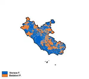 Francesco Storace (National Alliance) was elected President, defeating incumbent Piero Badaloni (The Democrats).