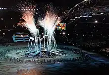 ![]() Athletes leaving the stadium at the end of the ceremony | |