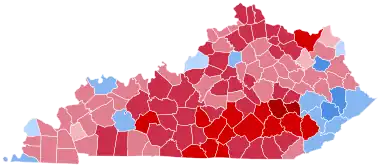 Kentucky was won by Governor George W. Bush. He won most of the counties and congressional districts in the state. Bush dominated among the rural areas of the state. The only congressional district Gore won was the third district, which is a part of Jefferson County, Kentucky, the highest populated county in the state. The only other region where Gore performed strongly was in the coal dependent counties in the southeastern part of the state. As of the 2020 presidential election, this is the last election in which Boyd County, Muhlenberg County, Harlan County, Perry County, Letcher County, Ballard County, and Fulton County voted for the Democratic candidate, and also the first in which Wolfe County and Morgan County ever voted for a Republican.[1] This election cemented Kentucky from a major swing state into a Republican stronghold, although the state would not back the loser of a general election until 2008.