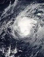 The first storm of the season, which formed on January 9 near Palau.[8] It developed from the monsoon trough and was first observed by the JTWC two days before its formation.[9] The system initially consisted of an area of convection with a weak circulation, located in an area of weak wind shear.[19] On January 10, the JMA classified the system as a tropical depression, designated as "01W".[8] On that same day, the JTWC initiated advisories on TD 01W, and PAGASA given the local name "Agaton". The storm moved west-northwestward due to a ridge to the north, and the system gradually became better organized.[19] On January 12, the JMA upgraded the depression into a tropical storm named "Tapah", and later that day estimated peak winds of 75 km/h (47 mph).[8] Around that time, Tapah developed an eye feature beneath its convection, prompting both the JTWC and PAGASA to estimate peak winds of 95 km/h (59 mph).[19] An approaching trough weakened the ridge, which turned the storm to the northwest. Due to increasing wind shear,[9] convection gradually weakened, and the JMA downgraded Tapah to a tropical depression on January 13; however, other agencies maintained the system as a tropical storm. The next day, Tapah dissipated along the eastern coast of Luzon in the Philippines.[8][19]