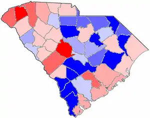 2002 South Carolina gubernatorial election map, by percentile by county.
