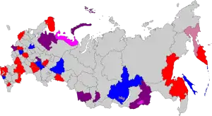 Chechnya29 AugustSergey Abramov[lower-alpha 1]Green tick Alu Alkhanov (UR) 73.67%