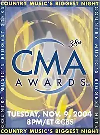 1. "38th Annual CMA Awards". ACountry. 2004-10-26. Retrieved 2019-09-05.