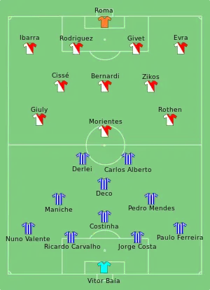 - 1 2 "Tactical Line-ups – Final – Wednesday 26 May 2004" (PDF). UEFA. 26 May 2004. Retrieved 29 December 2017.