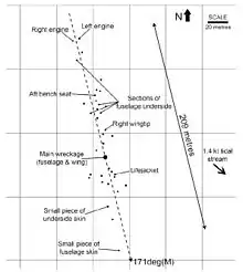 Sketch of debris field showing the position of some of the wreckage from G-BOMG off the coast of Machrihanish, Scotland.