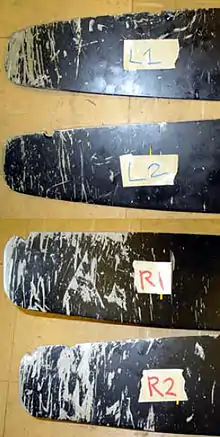 Propeller tips from Loganair's Islander G-BOMG following the accident. Note the similar damage to the leading edge of both right and left propellers.