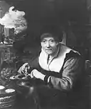 NK3086 | Navolger van D. Teniers II | Zittende vrouw met hond en anjer | 1964 | non-museum institution |
