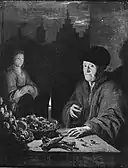 NK3291 | Navolger van G. Dou | Groenteverkoopster bij kaarslicht | 1439 | depot ICN |