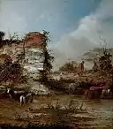 NK1519 | S.J. van Ruysdael | Veerboot met koeien op de Vecht bij Nijenrode | 2772 | Stedelijk Museum De Lakenhal |