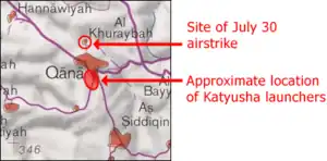 - In the two weeks prior to the bombing, Hezbollah fired a number of Katyusha rockets from an area between Qana and the nearby village of Al Ṣiddiqin.