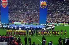 The 2006 UEFA Champions League final was an association football match between Barcelona of Spain and Arsenal of England at the Stade de France in Saint-Denis, Paris, France, on Wednesday, 17 May 2006. It was the final match of the 2005–06 season of Europe's primary cup competition, the UEFA Champions League. Barcelona were appearing in their fifth final, having won the competition once in 1992, while it was Arsenal's first final appearance and the first appearance by a club from London.