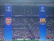 Neither side had been beaten en route to the final, with Arsenal only conceding two goals in their 12 matches before the final, including a record ten successive matches without conceding. Barcelona, on the other hand, had scored 114 goals in all competitions before the final. The two finalists were guaranteed a financial windfall from their progress to the final. Arsenal would receive a revenue of around €37.3 million if they won and approximately €34.7 million if they lost. Barcelona would earn €31.5 million from revenue if they won, and around €28.9 million if they were to lose. Included in the total for participating in the final, the UEFA Champions League winners would collect approximately €6.4 million, with the runners-up receiving approximately €3.8 million.[14] The final marked the appearance of a new trophy following Liverpool's triumph over Milan the previous year. As Liverpool won the competition for the fifth time they were entitled to keep the trophy, creating the need for a new one.[15]