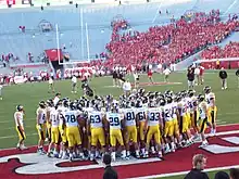 Following the loss to Ohio State, Iowa proceeded to score a season-high 47 points in a victory over Purdue. But the most notable score came during the 4th quarter, when Adam Shada intercepted a Curtis Painter pass and returned it a school record 98-yards for the touchdown.[5] However, Iowa's joy would not last long, as the Hawkeyes were upset by Indiana only a week later. The 31–28 win was Indiana's biggest win since a victory over 9th-ranked Ohio State in 1987.[6]
