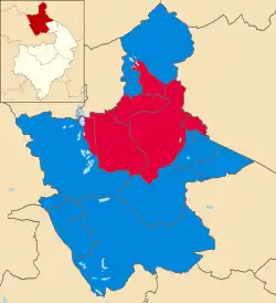 All 35 seats from all wards were up for election, with 18 seats needed for an overall majority. The Conservatives won 21 seats, with Labour winning the remaining 14. The Liberal Democrats lost all four of their seats.[2][3][4][5]