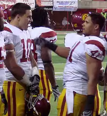 The Trojans entered pre-season fall camp well stocked at the running back position, with 10 former high school Super Prep All-Americans, nine of whom were Prep Star all-Americans and seven were Parade all-Americans.[31] The exceptional running back situation at USC was a major factor in Sports Illustrated forecasting the 2007 season as "The Year of the Running Back."[32] In judging USC as a pre-season favorite, particular emphasis was made on the defense. Considered to be one of the best defenses during the 2006 season, the Trojans entered 2007 with 10 returning starters and key backups. After a one-season experiment with the 3–4 defense formation, the defense returned to using the 4–3. The highlight of the defense was the linebacking corp, led by Brian Cushing, Keith Rivers and Rey Maualuga.[33][34]