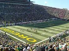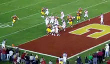 The team entered the season with high expectations. It was ranked No. 1 in all national pre-season polls, picked unanimously to win the Pac-10 Conference and expected to contend for a national championship.[2][3][4][5][6] Those hopes were dealt a major blow when the Trojans lost to 41-point underdog Stanford in a mid-season game that was named one of the greatest upsets in a season that became defined by them.[7][8][9] After their second loss, there were questions as to whether the team would be able to even win their own conference, let alone compete nationally.[10][11] However, USC defied mid-season expectations and rallied, finishing the season ranked No. 2 in the Coaches' Poll and No. 3 in the Associated Press (AP) Poll.[12][13] By the end of the season various sports journalists said the Trojans were playing the best football of anyone in the country.[14][15][16][17][18]