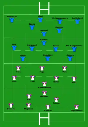 | Tries: Ghiraldini 16' c Mauro Bergamasco 65' c Con: Marcato (2) Pen: Marcato 6' | Report | Tries: Delasau 3' c, 29' m Ratuvou 40' c Con: Bai (2) Pen: Bai 18', 42' |