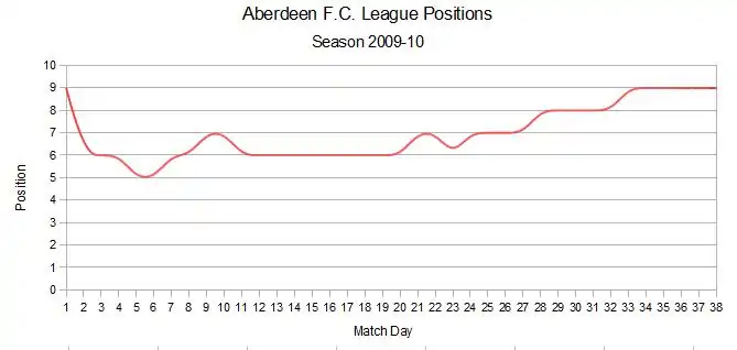Aberdeen started the new season under new management. On the last day of the 2008–09 it was announced that Jimmy Calderwood and his management team would leave after five years at the club.[1] Aberdeen negotiated with fellow SPL club Motherwell for the release of their manager, Mark McGhee. McGhee had a successful spell at the club as a player, when the Dons' won the European Cup Winners' Cup in 1983. Along with his assistant Scott Leitch the pair would form Aberdeen's new management team.[2] In the summer, Aberdeen lost their captain, Scott Severin, who left to pursue a career in England with Championship club Watford.[3] The club also parted ways with four other players; defender Lee Mair joined fellow SPL club St Mirren. Jamie Smith joined MLS side Colorado Rapids, goalkeeper Bertrand Bossu had his contract terminated by the club and he was signed up with English club Crewe Alexandra. The club also parted ways with Faroese youngster Rogvi Holm. With the squad depleting, McGhee sought out to buy new players. McGhee tried to sign Benin international Réda Johnson, but the defender choose to move to English outfit Plymouth Argyle. McGhee did make his first signing, goalkeeper Stuart Nelson from Norwich City. Jerel Ifil, Davide Grassi and Maurice Ross joined from Swindon Town, Espanyol and Kocaelispor respectively. Aberdeen became one of the first clubs to participate in the newly re-branded Europa League. Aberdeen were drawn against Czech opposition in Sigma Olomouc. It soon proved to be a tie to forget, as the Dons were humbled 5–1 at home, and 3–0 away, which resulted in an 8–1 aggregate score. Aberdeen were also knocked out early in the League Cup as well. After falling 2–0 down, goals from Michael Paton ensure that the cup tie against Dundee would go into extra time. Aberdeen lost the game 3–2. Aberdeen started their League campaign with a 3–1 defeat to Celtic, but with wins against Hamilton, St Mirren, St Johnstone and a notable one against rivals Rangers have got Aberdeen's season back on track.