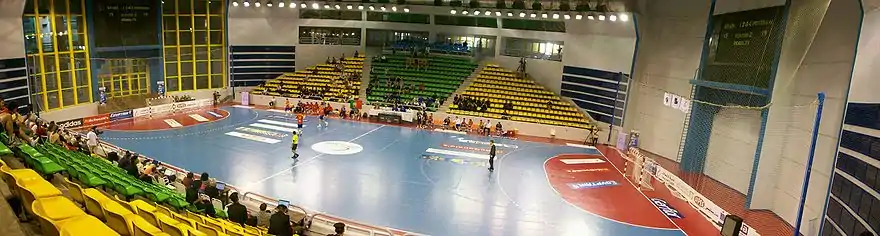 Panorama of action during match between Spain and Portugal. Cairo Stadium Hall 2, August 17.