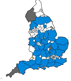 The 2009 United Kingdom local elections were elections held to all 27 County Councils, three existing Unitary Authorities and five new Unitary Authorities, all in England, on 4 June 2009.[2][3] The elections were due to be held on 7 May 2009, but were delayed in order to coincide with elections to the European Parliament.[4][5]
