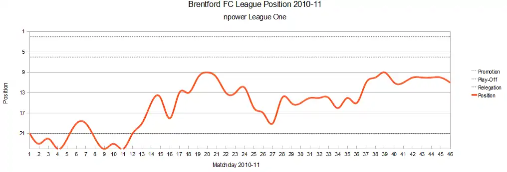 11. 1 2 3 4 5 6 7 8 "Brentford results for the 2010–2011 season". Statto.com. Archived from the original on 9 September 2016. Retrieved 28 March 2017.