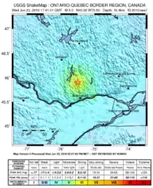- ↑ "Magnitude 5.0 – ONTARIO-QUEBEC BORDER REGION, CANADA". USGS. Archived from the original on 26 June 2010. Retrieved 23 June 2010.