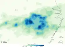 The 2010 China floods began in early May 2010.[8][9][10] Three hundred and ninety-two people died, and a further 232 people were reported missing as of June 30, 2010,[11][12] including 57 people in a landslide in Guizhou. Fifty-three of the deaths occurred from the flooding and landslides between May 31 and June 3,[13] and 266 deaths occurred between June 13 and June 29.[14] Four hundred and twenty four people were killed by the end of June,[11] including 42 from the Guizhou landslide; 277 more were killed and 147 were missing in the first two weeks of July,[15][16][17] bringing the death toll as of August 5 to 1,072.[2][4] A landslide in early August in Gansu killed at least 1,471 people and left 294 missing. In total, the flooding and landslides killed at least 3,185 people in China by August 31.[1] More than 230 million people[1][18] in 28 provinces, municipalities, and regions,[6][2][11] especially the southern and central provinces and regions of Zhejiang, Fujian, Jiangxi, Hubei, Hunan, Guangdong, Guangxi, Chongqing Municipality, Gansu, Sichuan, and Guizhou, and the northeastern province of Jilin were affected, while at least 4.66 million people[19] were evacuated because of the risk of flooding and landslides in the latter half of June.[5][20][21][22][23] By early August, over 12 million people were evacuated,[6][2] and that number rose to 15.2 million by August 31.[1]