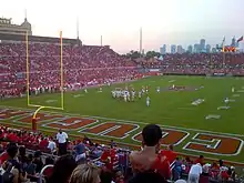 The 2009 Houston Cougars team defeated the nationally ranked Oklahoma State Cowboys in their first match-up. Following the victory, the Cougars were ranked by the AP Poll for the first time in more than twenty years. The Cougars played the Texas Tech Red Raiders in front of a record-breaking 32,114 sold-out crowd at Robertson Stadium.