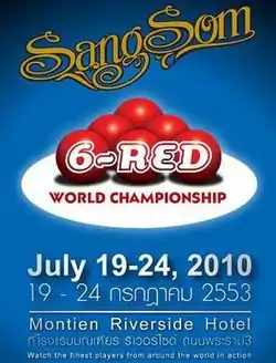 The 2010 Six-red World Championship (often styled the 2010 SangSom 6-red World Championship for sponsorship and marketing purposes) was a six-red snooker tournament that took place between 19 and 24 July 2010 at the Montien Riverside Hotel in Bangkok, Thailand.