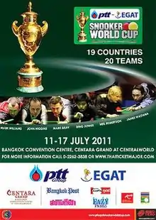 - 1 2 3 4 5 "PTT-EGAT .Snooker World Cup". Thai Ticket Major. Retrieved 19 June 2011.