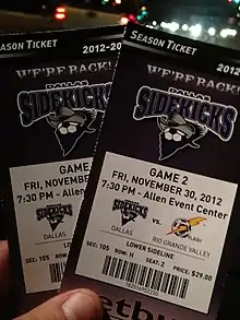 - ↑ Piña, Gary (January 25, 2013). "Sidekicks Take On Undefeated Sockers On Sunday At Allen Event Center". The Dallas Morning News. Retrieved February 13, 2013.