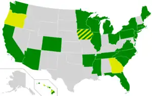 24 AR, AZ, CA, CO, CT, DE, FL, IL, MA, MI, MS, ME, MN, NJ, NY, OH, PA, RI, SC, TN, VA, WA, DC, WI | |