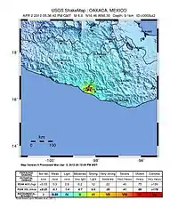 - 1 2 "PAGER – M 7.4 – Oaxaca, Mexico". United States Geological Survey (USGS). 20 March 2012. Archived from the original on 22 March 2012. Retrieved 20 March 2012.