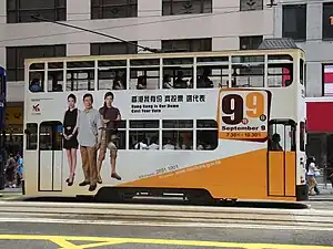 An electoral advertisement on a tram