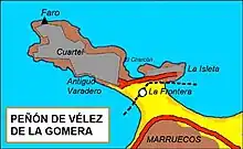 ![]() Map of the Peñón de Velez de la Gomera and the border with Morocco | |||||||