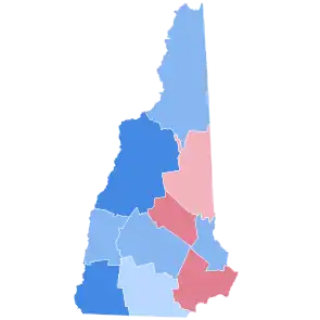 New Hampshire voters chose to re-elect President Barack Obama, giving him 51.98% of the vote to Mitt Romney's 46.40%, a Democratic victory margin of 5.58%. Despite Obama winning all of the state's counties in 2008, he lost three of them to Romney this election: Belknap, Carroll, and Rockingham.
