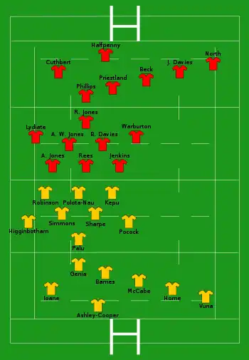 - Four players made their full international debuts for Wales: Rhodri Jones, Harry Robinson, Liam Williams and Adam Warren.