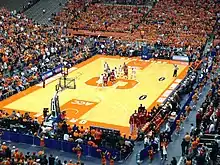 The 2013–14 Syracuse Orange men's basketball team represented Syracuse University during the 2013–14 NCAA Division I men's basketball season. The team played its home games at the Carrier Dome in Syracuse, New York. This marked Syracuse's inaugural season in the Atlantic Coast Conference, having moved from the Big East Conference. They finished the season 28–6, 14–4 in ACC play to finish in second place. They lost in the quarterfinals of the ACC tournament to North Carolina State. They received an at-large bid to the NCAA tournament where they defeated Western Michigan in the second round before losing in the third round to Dayton. They started the season 25–0 before losing 6 of their final 9 games.