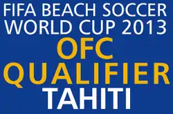 The 2013 OFC Beach Soccer Championship took place from 31 August to 2 September 2013 on the grounds of the University of New Caledonia in Nouméa, New Caledonia.[1] It acted as a qualifier for the 2013 FIFA Beach Soccer World Cup. This time around, a second OFC team qualified alongside Tahiti for the World Cup, due to the facts that Tahiti is the host of the World Cup and that the OFC is only supposed to have one representative.