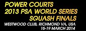 The 2013 PSA World Series Finals is the men's edition of the 2013 PSA World Series Finals (Prize money : $110 000). The top eight players in the PSA World Series 2013 were qualified for the event, which took place at the Westwood Club in Richmond, Virginia in the United States from March 15 to March 19, 2014.[1] Ramy Ashour won his first PSA World Series Finals trophy, beating Mohamed El Shorbagy in the final.