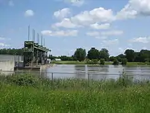 With excess spring flows on the Assiniboine River directed towards Lake Manitoba through use of the Portage Diversion, lake levels were above the desirable range of the lake of 810.0 to 812.0 feet above sea level (ASL) and even the upper limit of 813 feet ASL prior to the summer flood.[14][15] Continued use of the Portage Diversion occurred after it was re-opened to help mitigate against flooding, during which flows of over 34,000 cfs were directed towards the lake, well above the original designed channel capacity of the Portage Diversion of 25,000 cfs.[16][17] During the 2011 as well as the 2014 floods, work was done on the Portage Diversion to allow it to convey the higher volumes experienced. The result of this was that the water level of Lake Manitoba peaked at 814.6 feet putting residents on the lake at risk of flooding and damage from wind events.[18]