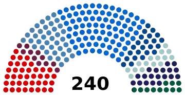 Parliamentary elections were held in Bulgaria on 5 October 2014 to elect the 43rd National Assembly.[1] GERB remained the largest party, winning 84 of the 240 seats with around a third of the vote. A total of eight parties won seats, the first time since the beginning of democratic elections in 1990 that more than seven parties entered parliament.[2] Boyko Borisov then became prime minister as head of a coalition with the Reformist Bloc and with outside support from the Patriotic Front and the Alternative for Bulgarian Revival.