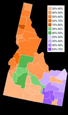 | Twin Falls | 10,527 | 57.04% | 7,927 | 42.96% | 2,600 | 14.08% | 18,454 |