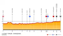 Like the previous stage, this stage was suited towards the sprinters. Heading eastwards, there were no categorised climbs, ensuring that CCC–Polsat–Polkowice's Maciej Paterski would keep the fuchsia jersey. Also like the previous stage, there were two intermediate sprints, coming in Kampinos and in Stare Babice, ahead of a 4.8-kilometre (3.0-mile) loop in Warsaw, to be completed three times.