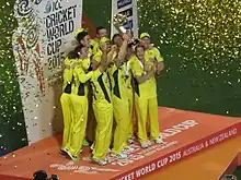 Australian players celebrating after receiving the trophy