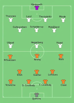 - ↑ "Match report – Group B – Côte d'Ivoire v Norway" (PDF). FIFA.com. Fédération Internationale de Football Association. 15 June 2015. Archived from the original (PDF) on June 18, 2015. Retrieved 7 January 2020.
