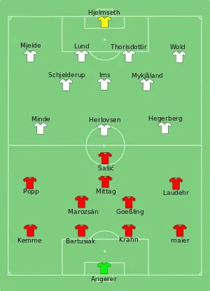 - ↑ "Match report – Group B – Germany v Norway" (PDF). FIFA.com. Fédération Internationale de Football Association. 11 June 2015. Archived from the original (PDF) on June 14, 2015. Retrieved 7 January 2020.