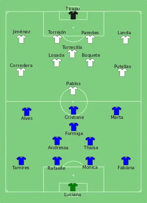 - 1 2 "Tactical Line-up – Brazil-Spain" (PDF). FIFA. 13 June 2015. Archived from the original (PDF) on 15 June 2015. Retrieved 13 June 2015.